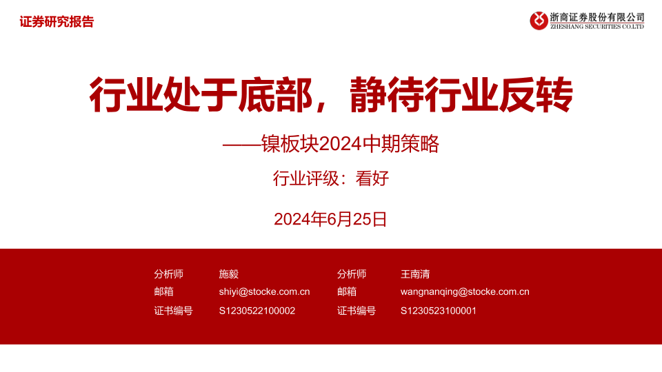 【浙商证券】【20240625】镍板块2024中期策略:行业处于底部,静待行业反转-16页