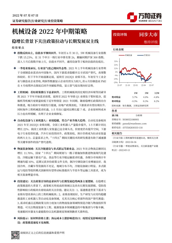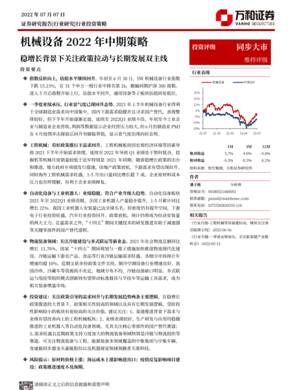 【万和证券】【20220707】机械设备行业2022年中期策略:稳增长背景下关注政策拉动与长期发展双主线-32页
