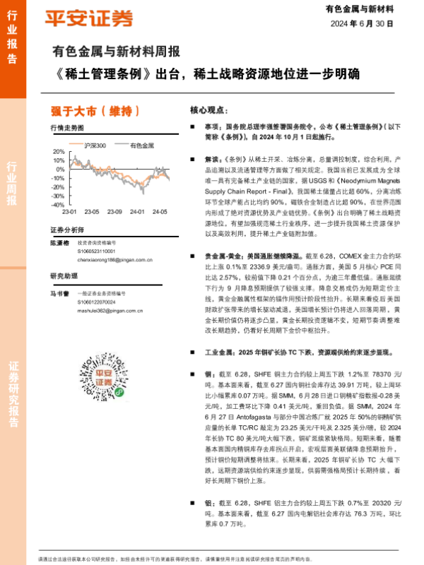 【平安证券】【20240630】20240630-平安证券-有色金属与新材料周报:《稀土管理条例》出台,稀土战略资源地位进一步明确-13页