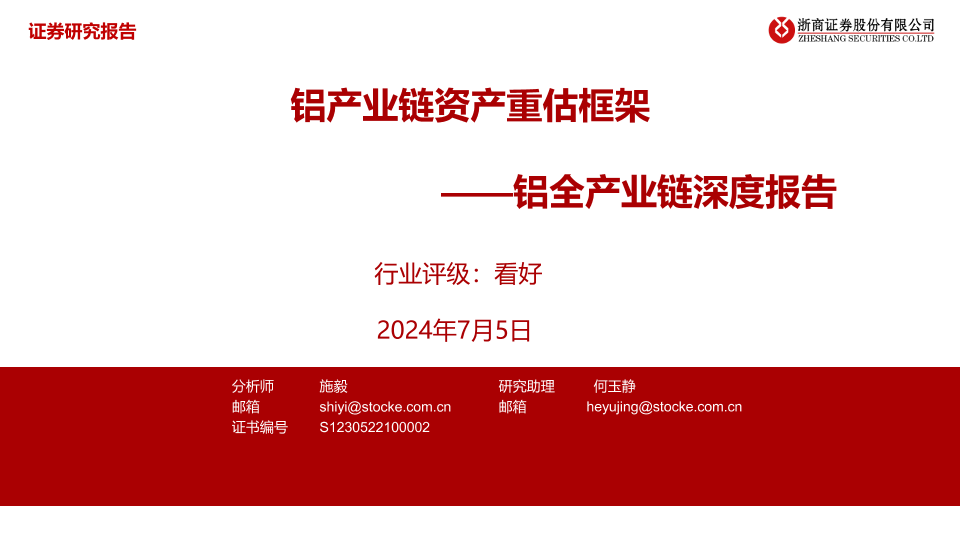 【浙商证券】【20240705】20240705-浙商证券-铝全产业链深度报告:铝产业链资产重估框架-23页