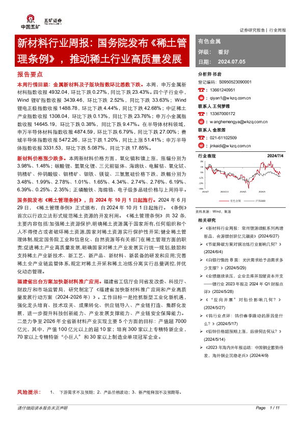 【五矿证券】【20240705】新材料行业周报:国务院发布《稀土管理条例》,推动稀土行业高质量发展-11页