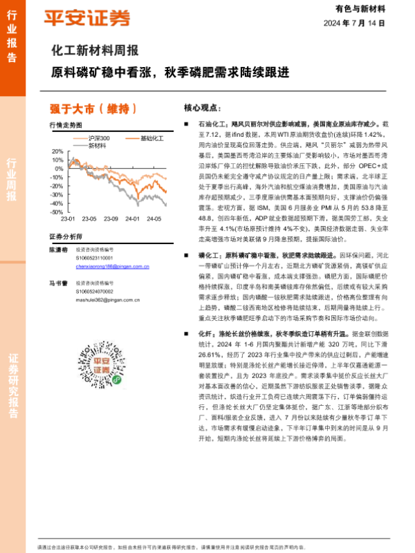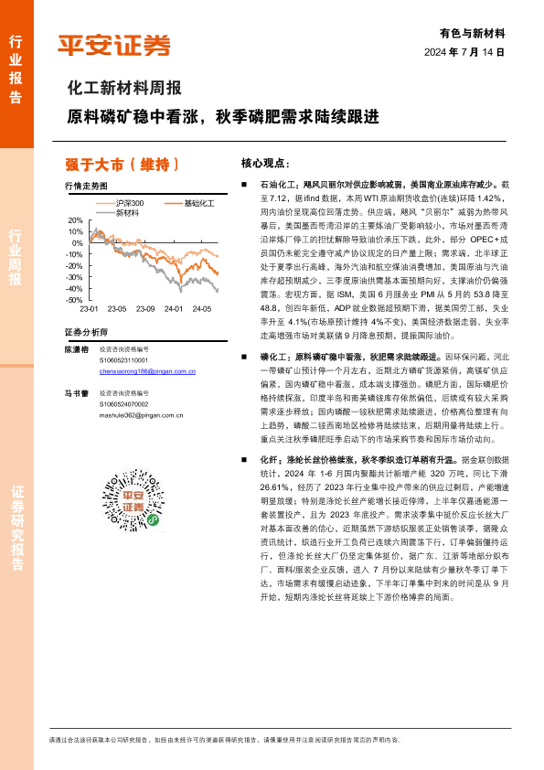 【平安证券】【20240714】20240714-平安证券-化工新材料行业周报:原料磷矿稳中看涨,秋季磷肥需求陆续跟进-15页
