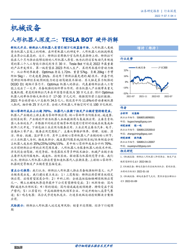 【国盛证券】【20220704】机械设备行业人形机器人深度二:TESLA BOT硬件拆解-30页