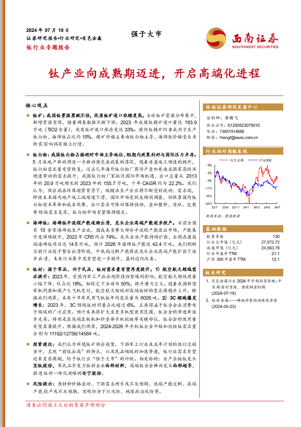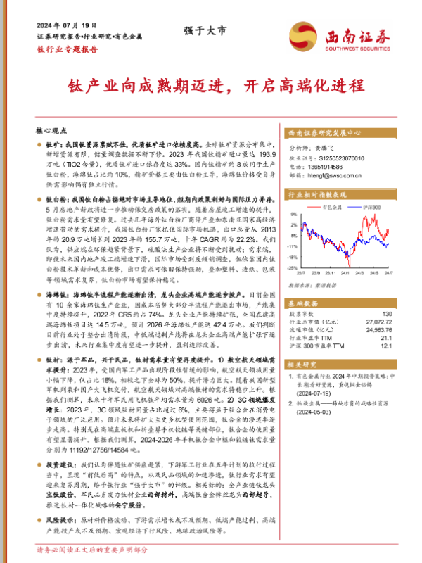 【西南证券】【20240719】钛产业向成熟期迈进,开启高端化进程-71页