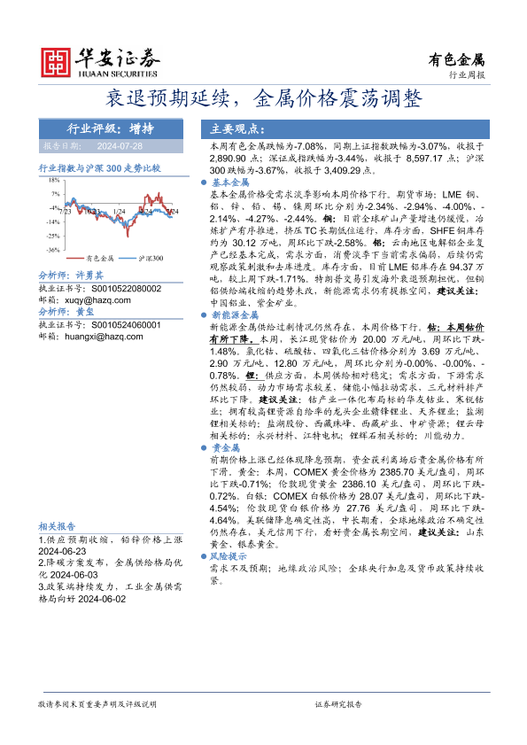 【华安证券】【20240728】20240728-华安证券-有色金属行业周报:衰退预期延续,金属价格震荡调整-14页