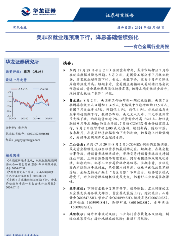 【华龙证券】【20240805】美非农就业超预期下行,降息基础继续强化-12页