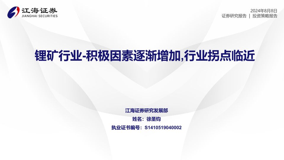 【江海证券】【20240808】锂矿行业:积极因素逐渐增加,行业拐点临近-18页