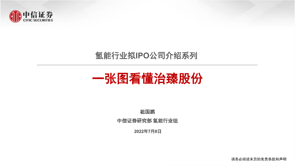 【中信证券】【20220708】氢能行业拟IPO公司介绍系列:一张图看懂治臻股份-15页