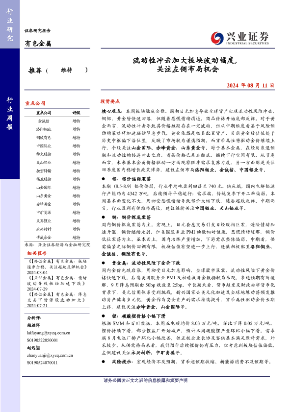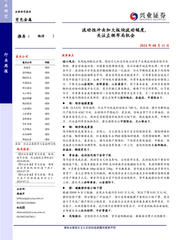 【兴业证券】【20240811】20240811-兴业证券-有色金属行业周报:流动性冲击加大板块波动幅度,关注左侧布局机会-29页