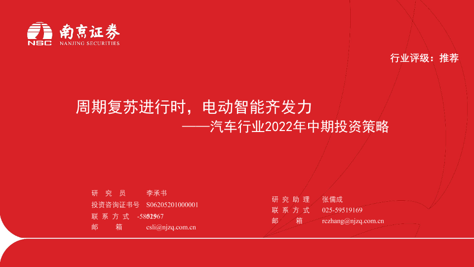 【南京证券】【20220705】汽车行业2022年中期投资策略:周期复苏进行时,电动智能齐发力-31页