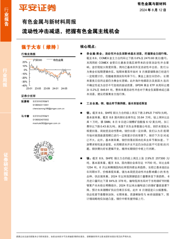 【平安证券】【20240812】20240812-平安证券-有色金属与新材料周报:流动性冲击减退,把握有色金属主线机会-13页
