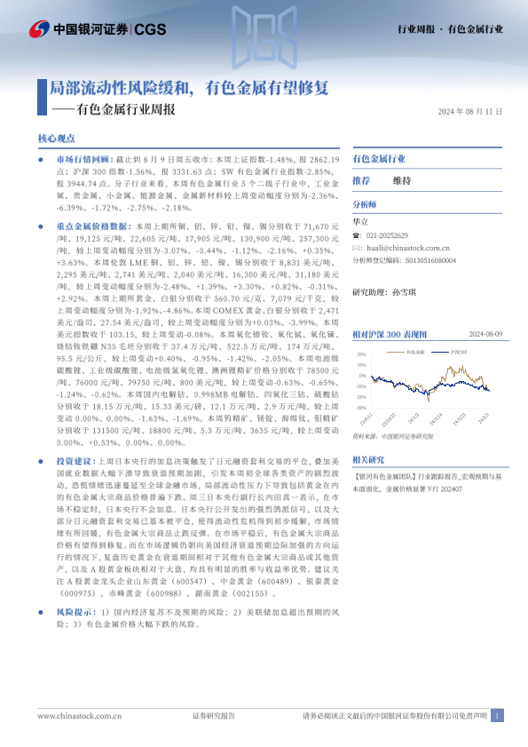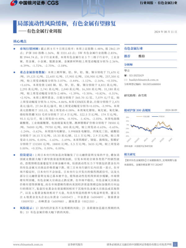 【银河证券】【20240811】20240811-中国银河-有色金属行业周报:局部流动性风险缓和,有色金属有望修复-20页