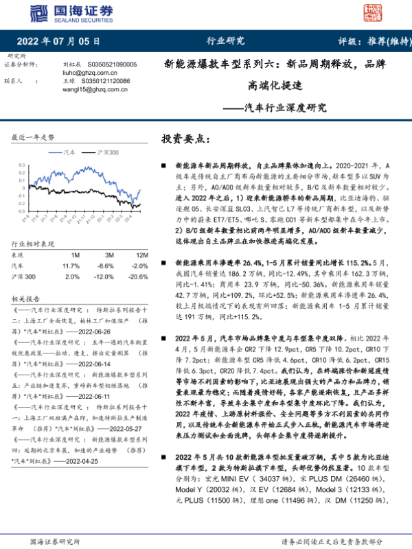 【国海证券】【20220705】汽车行业深度研究:新能源爆款车型系列六,新品周期释放,品牌高端化提速-42页