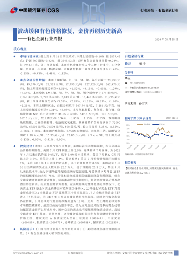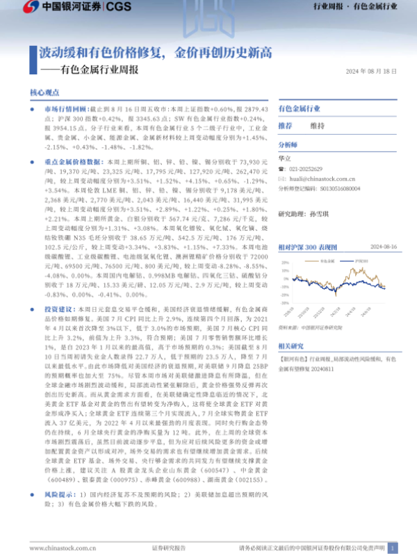 【银河证券】【20240818】20240818-中国银河-有色金属行业周报:波动缓和有色价格修复,金价再创历史新高-20页