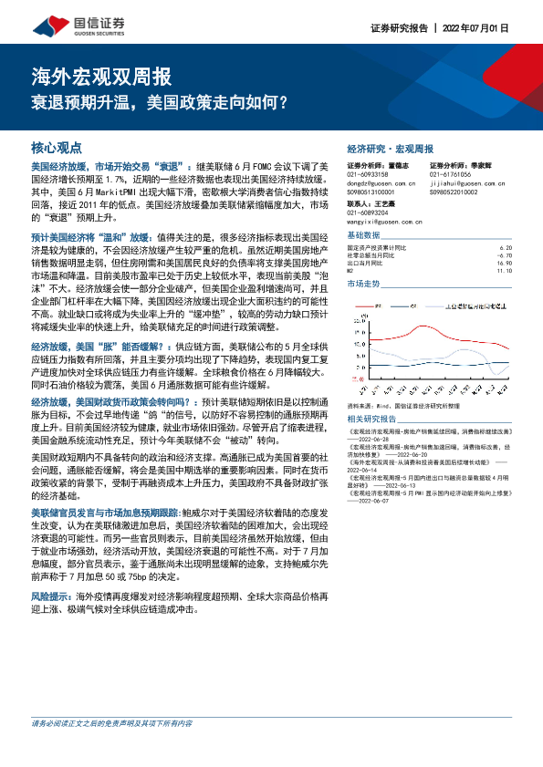 【国信证券】【20220701】海外宏观双周报:衰退预期升温,美国政策走向如何?-15页
