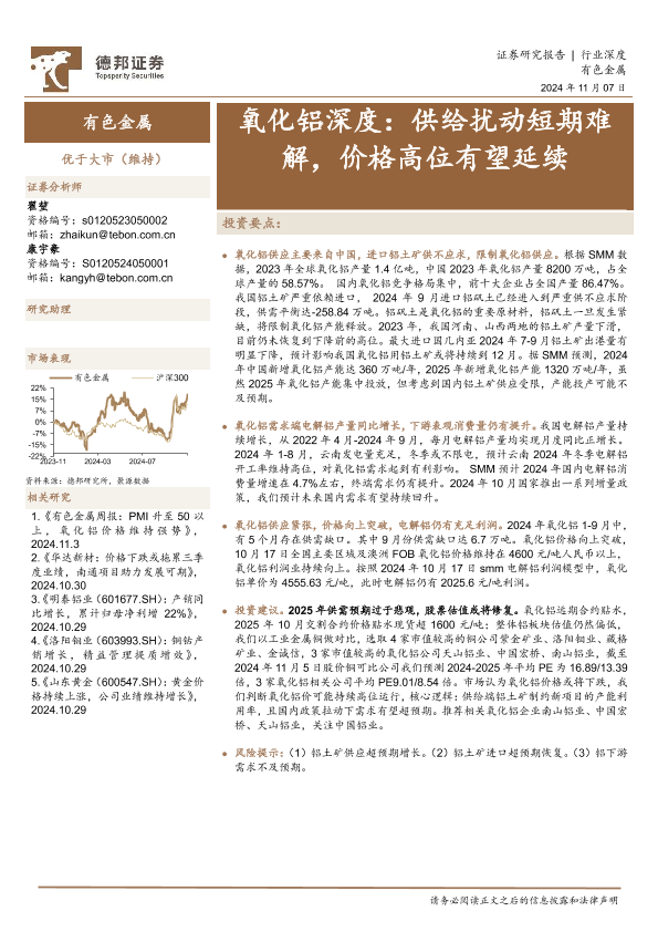 【德邦证券】【20241107】氧化铝深度:供给扰动短期难解,价格高位有望延续-24页