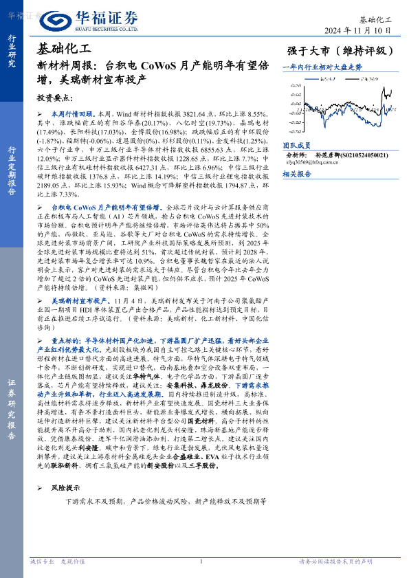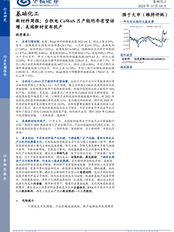 【华福证券】【20241110】新材料周报:台积电CoWoS月产能明年有望倍增,美瑞新材宣布投产-11页