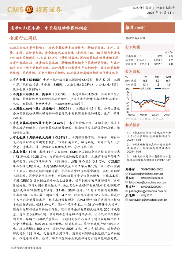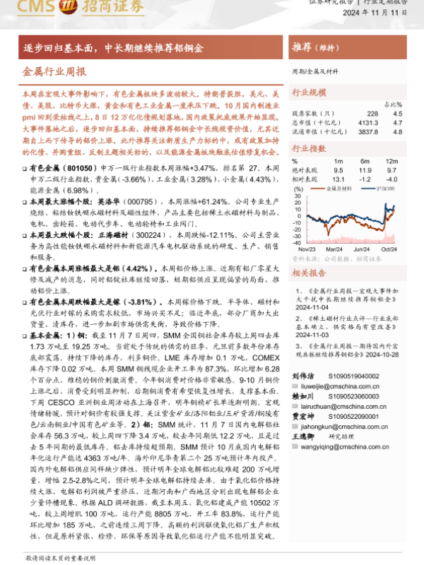 【海通证券】【20241111】金属行业周报:逐步回归基本面,中长期继续推荐铝铜金-15页