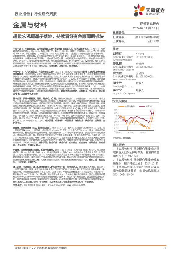 【天风证券】【20241110】20241110-天风证券-金属与材料行业研究周报:超级宏观周靴子落地,持续看好有色顺周期板块-16页
