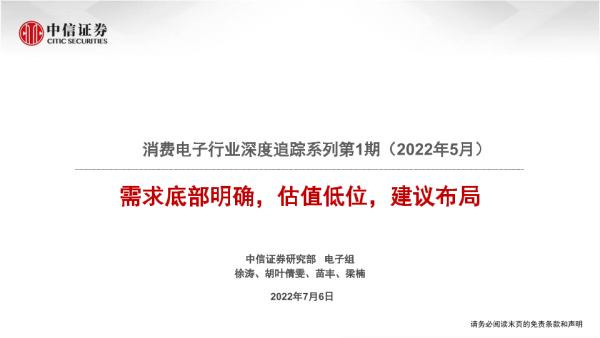 【中信证券】【20220706】消费电子行业深度追踪第1期(2022年5月):需求底部明确,估值低位,建议布局-135页