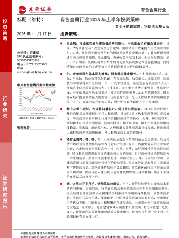 【东莞证券】【20241117】20241117-东莞证券-有色金属行业2025年上半年投资策略:黄金压舱铸辉煌,铜铝稀金映日长-45页