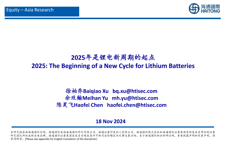 【海通国际】【20241118】2025年是锂电新周期的起点-26页