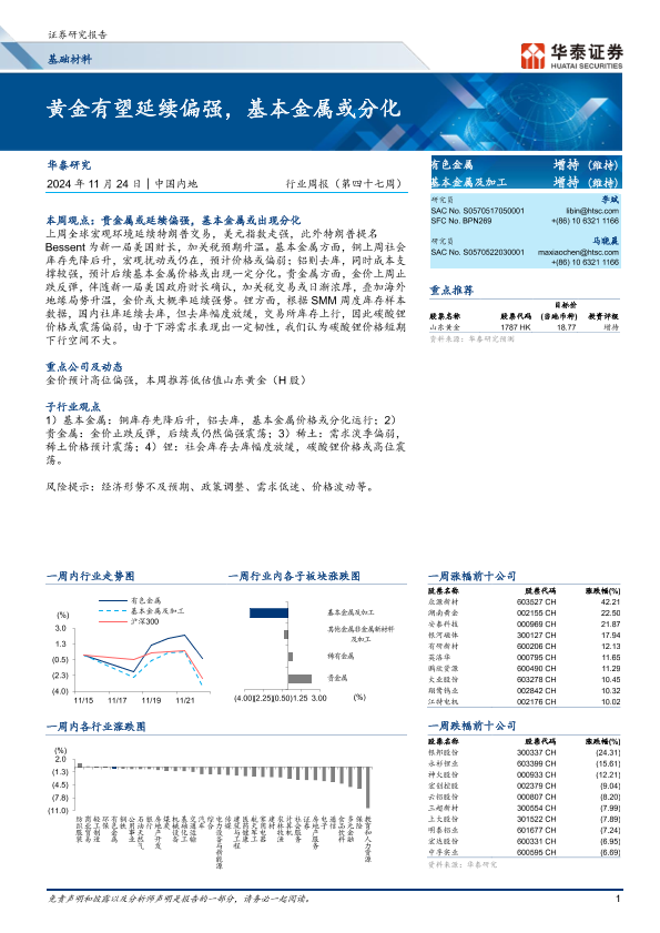 【华泰证券】【20241124】20241124-华泰证券-基础材料行业周报(第四十七周):黄金有望延续偏强,基本金属或分化-16页