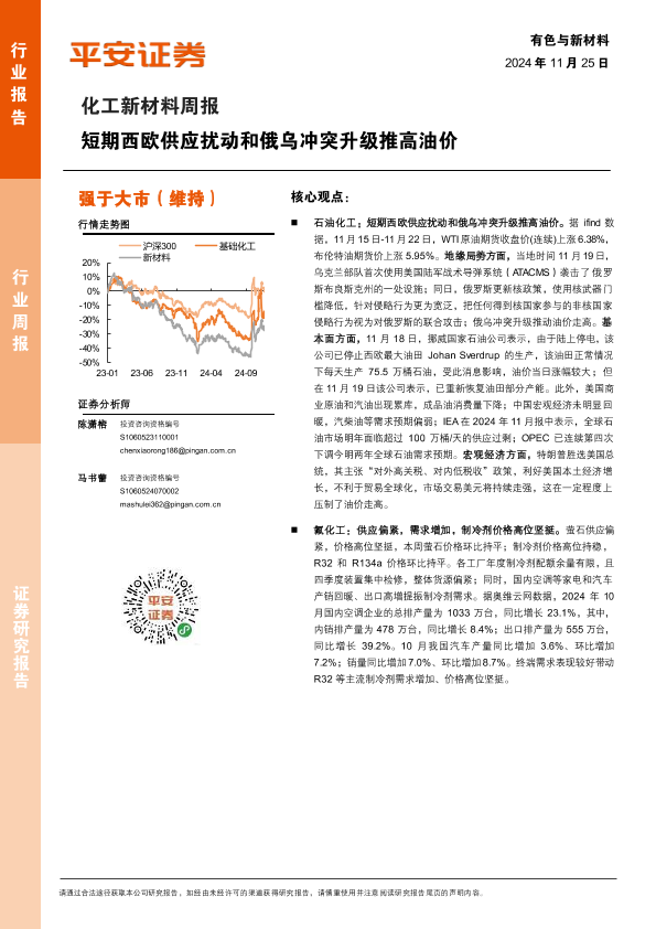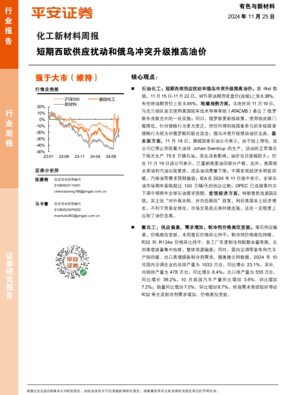 【平安证券】【20241125】20241125-平安证券-化工新材料行业周报:短期西欧供应扰动和俄乌冲突升级推高油价-15页