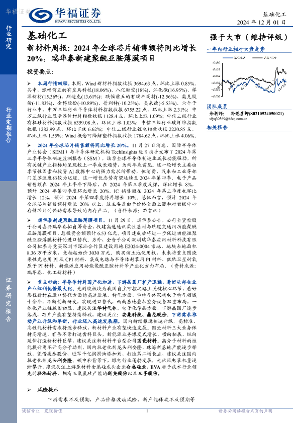 【华福证券】【20241201】2024年全球芯片销售额将同比增长20%,瑞华泰新建聚酰亚胺薄膜项目-11页
