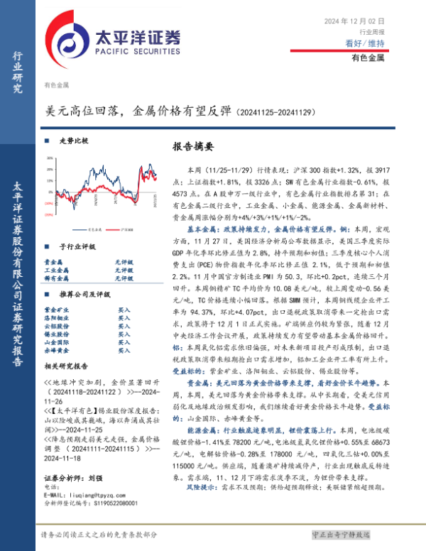 【太平洋证券】【20241202】20241202-太平洋-有色金属行业周报:美元高位回落,金属价格有望反弹-22页