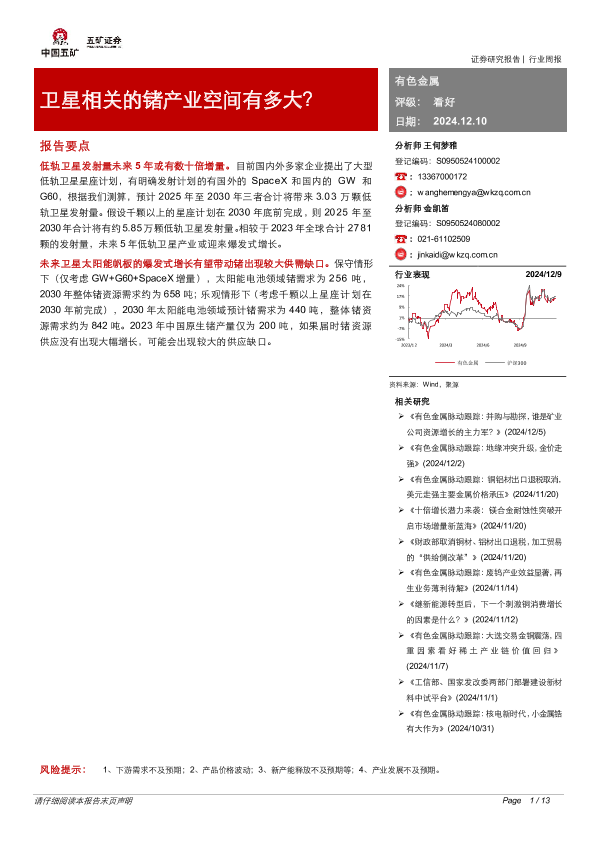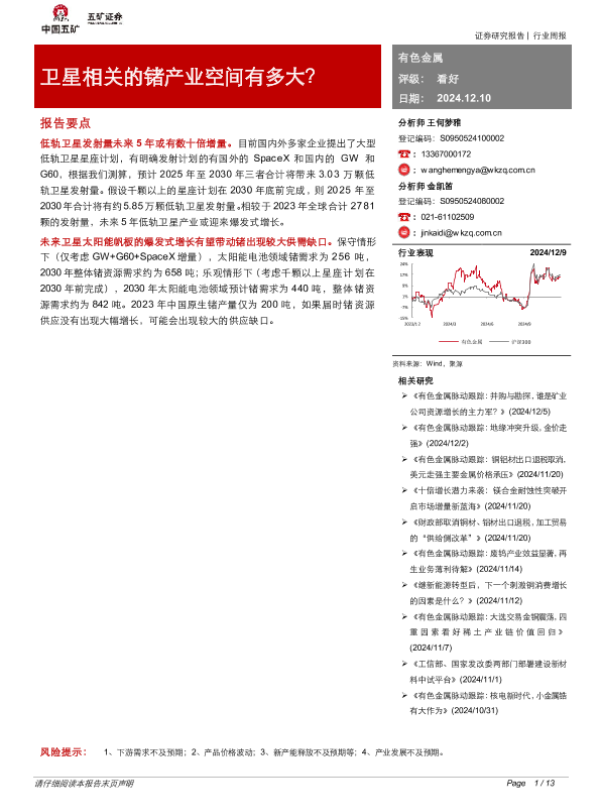 【五矿证券】【20241210】20241210-五矿证券-有色金属行业周报:卫星相关的锗产业空间有多大?-13页