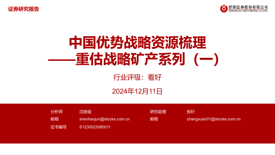 【浙商证券】【20241211】20241211-浙商证券-有色金属:重估战略矿产系列(一)-中国优势战略资源梳理-14页