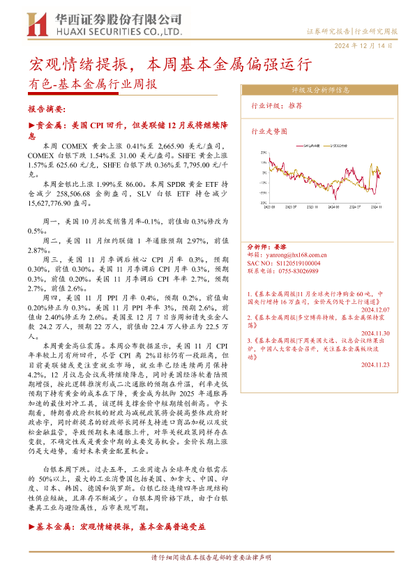 【华西证券】【20241214】20241214-华西证券-有色-基本金属行业周报:宏观情绪提振,本周基本金属偏强运行-21页