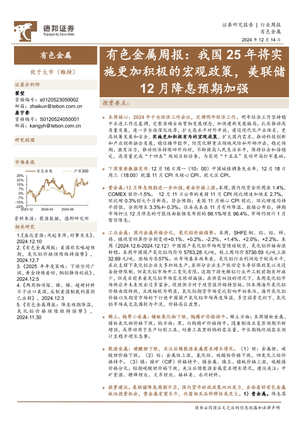 【德邦证券】【20241214】20241214-德邦证券-有色金属行业周报:我国25年将实施更加积极的宏观政策,美联储12月降息预期加强-25页