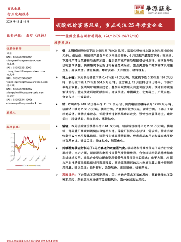 【华源证券】【20241215】20241215-华源证券-能源金属&新材料周报:碳酸锂价震荡筑底,重点关注25年增量企业-15页