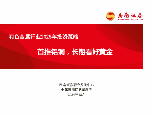 【西南证券】【20241220】有色金属行业2025年投资策略:首推铝铜,长期看好黄金-75页