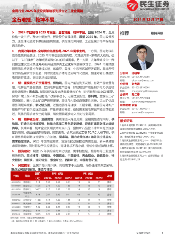 【民生证券】【20241217】金属行业2025年度投资策略系列报告之工业金属篇:金石难摧,乾坤不易-74页