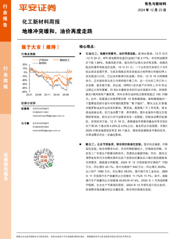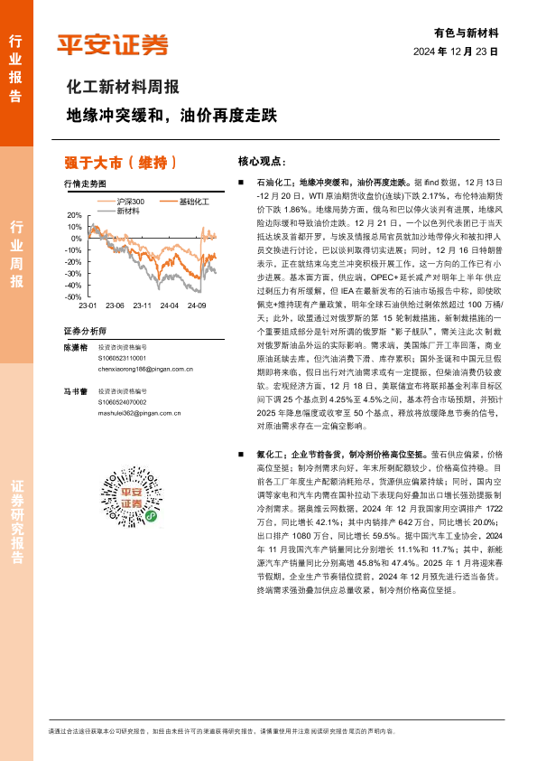【平安证券】【20241223】20241223-平安证券-化工新材料行业周报:地缘冲突缓和,油价再度走跌-15页