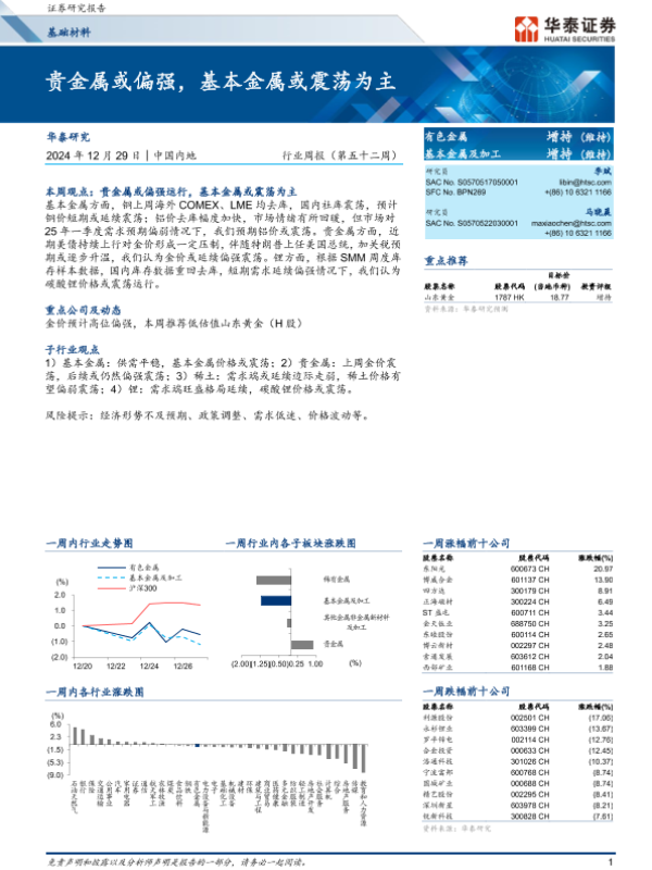 【华泰证券】【20241229】20241229-华泰证券-基础材料行业周报(第五十二周):贵金属或偏强,基本金属或震荡为主-16页