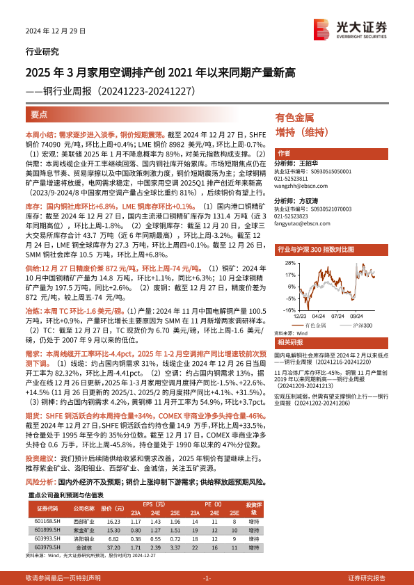 【光大证券】【20241229】20241229-光大证券-铜行业周报:2025年3月家用空调排产创2021年以来同期产量新高-18页
