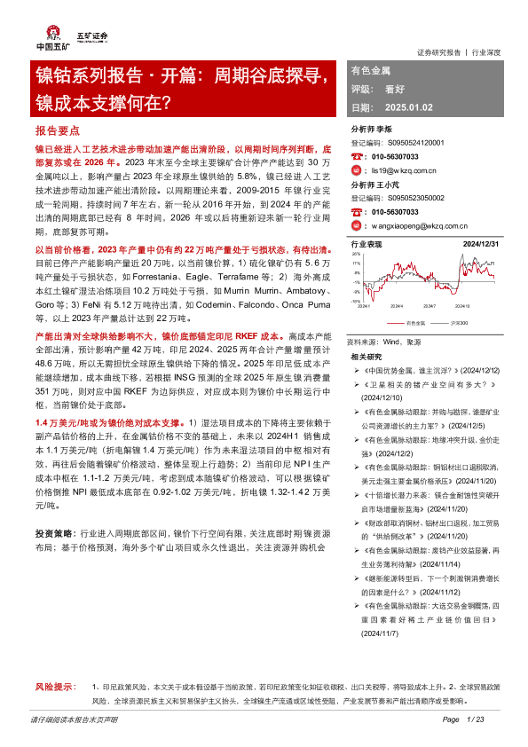 【五矿证券】【20250102】镍钴系列报告·开篇:周期谷底探寻,镍成本支撑何在?-23页