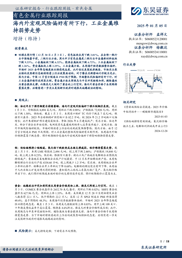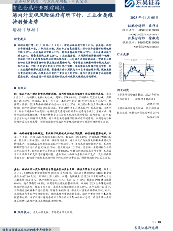 【东吴证券】【20250105】20250105-东吴证券-有色金属行业跟踪周报:海内外宏观风险偏好有所下行,工业金属维持弱势走势-18页
