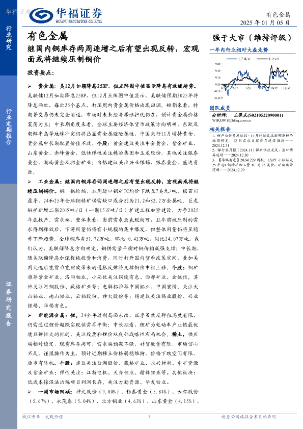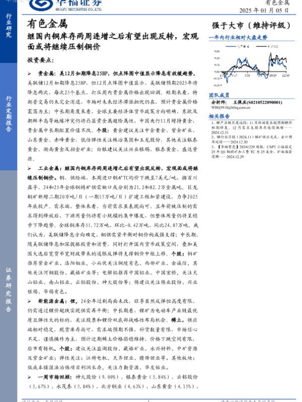 【华福证券】【20250105】有色金属:继国内铜库存两周连增之后有望出现反转,宏观面或将继续压制铜价-16页