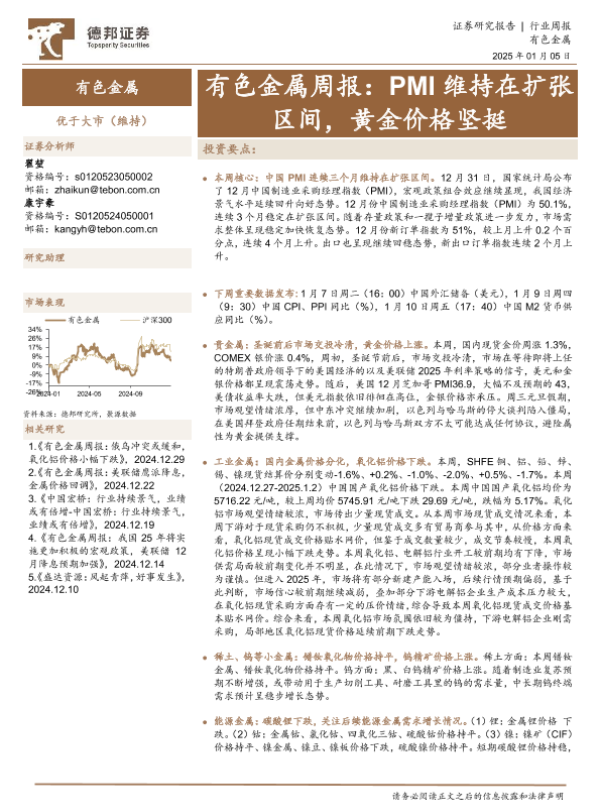 【德邦证券】【20250105】有色金属行业周报:PMI维持在扩张区间,黄金价格坚挺-25页