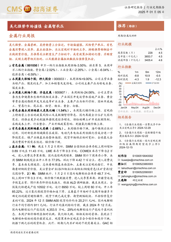 【海通证券】【20250105】20250105-招商证券-金属行业周报:美元强势市场谨慎 金属暂承压-16页