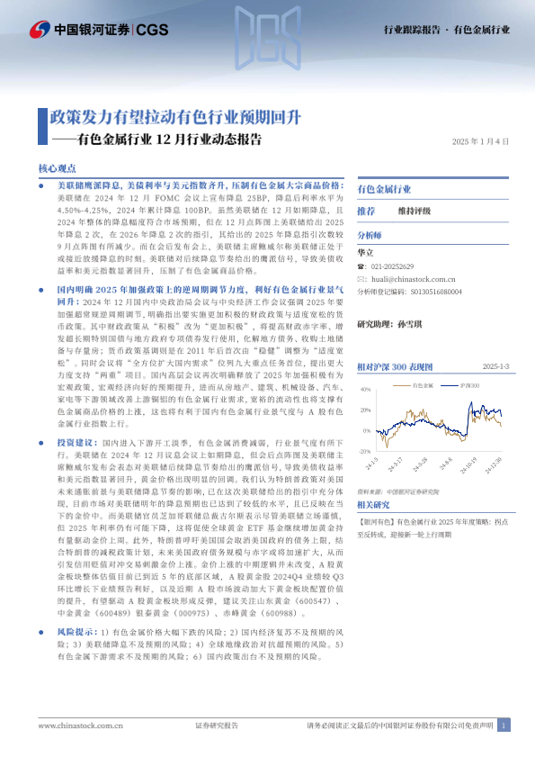 【银河证券】【20250104】20250104-中国银河-有色金属行业12月行业动态报告:政策发力有望拉动有色行业预期回升-25页