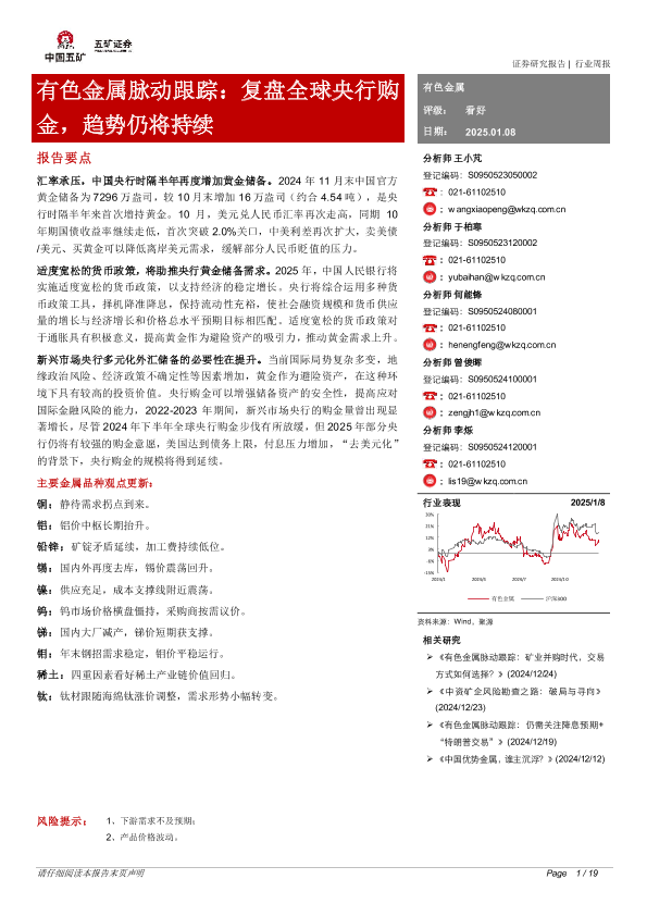 【五矿证券】【20250108】有色金属脉动跟踪:复盘全球央行购金,趋势仍将持续-19页