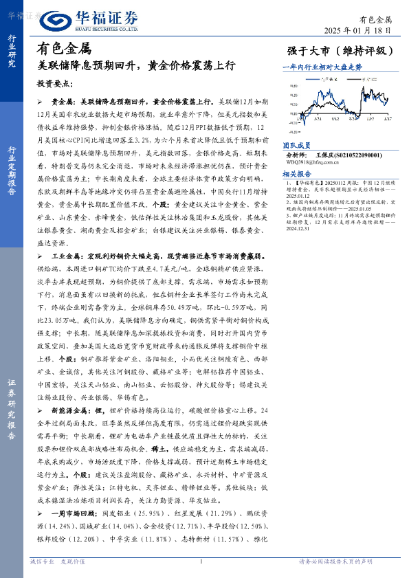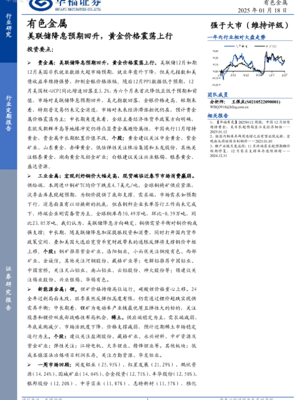 【华福证券】【20250118】有色金属:美联储降息预期回升,黄金价格震荡上行-17页