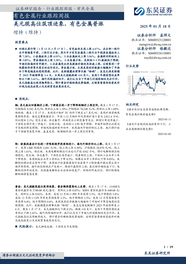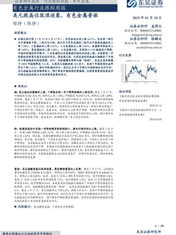 【东吴证券】【20250118】20250118-东吴证券-有色金属行业跟踪周报:美元现高位筑顶迹象,有色金属普涨-19页