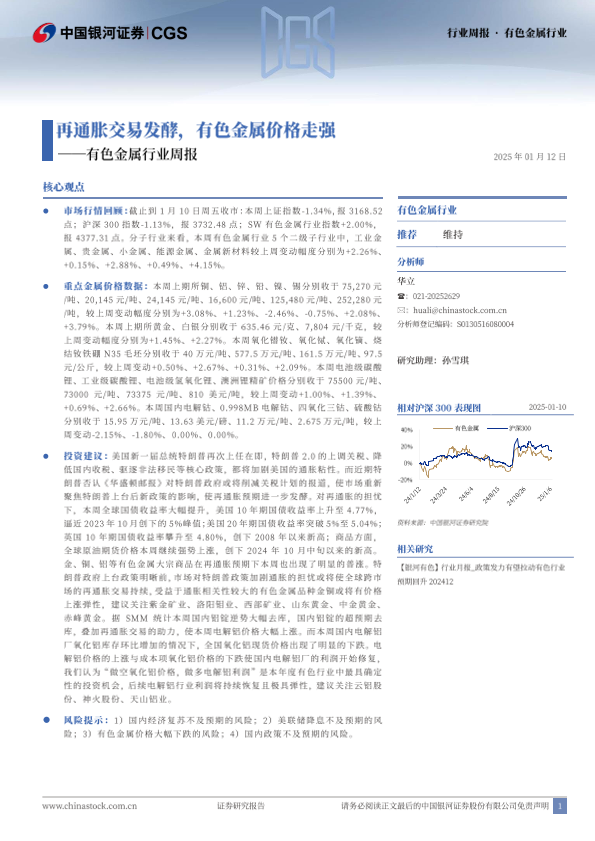 【银河证券】【20250112】20250112-中国银河-有色金属行业周报:再通胀交易发酵,有色金属价格走强-20页